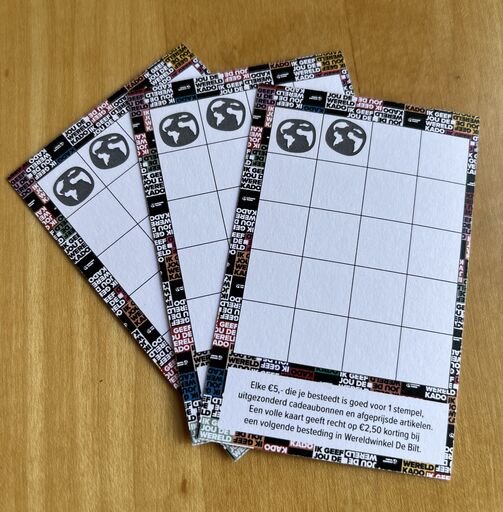 Voor onze trouwe klanten hebben we een spaaractie met stempelkaarten. Bij besteding van €5,- ontvang je één stempel. Een volle stempelkaart bevat 20 stempels. Tegen inlevering van een volle stempelkaart ontvang je €2,50 korting. Ook kun je de stempelkaart of losse stempels doneren voor een goed doel. Ieder jaar ondersteunen we een ander goed doel. Zie bijvoorbeeld het project van 2025.